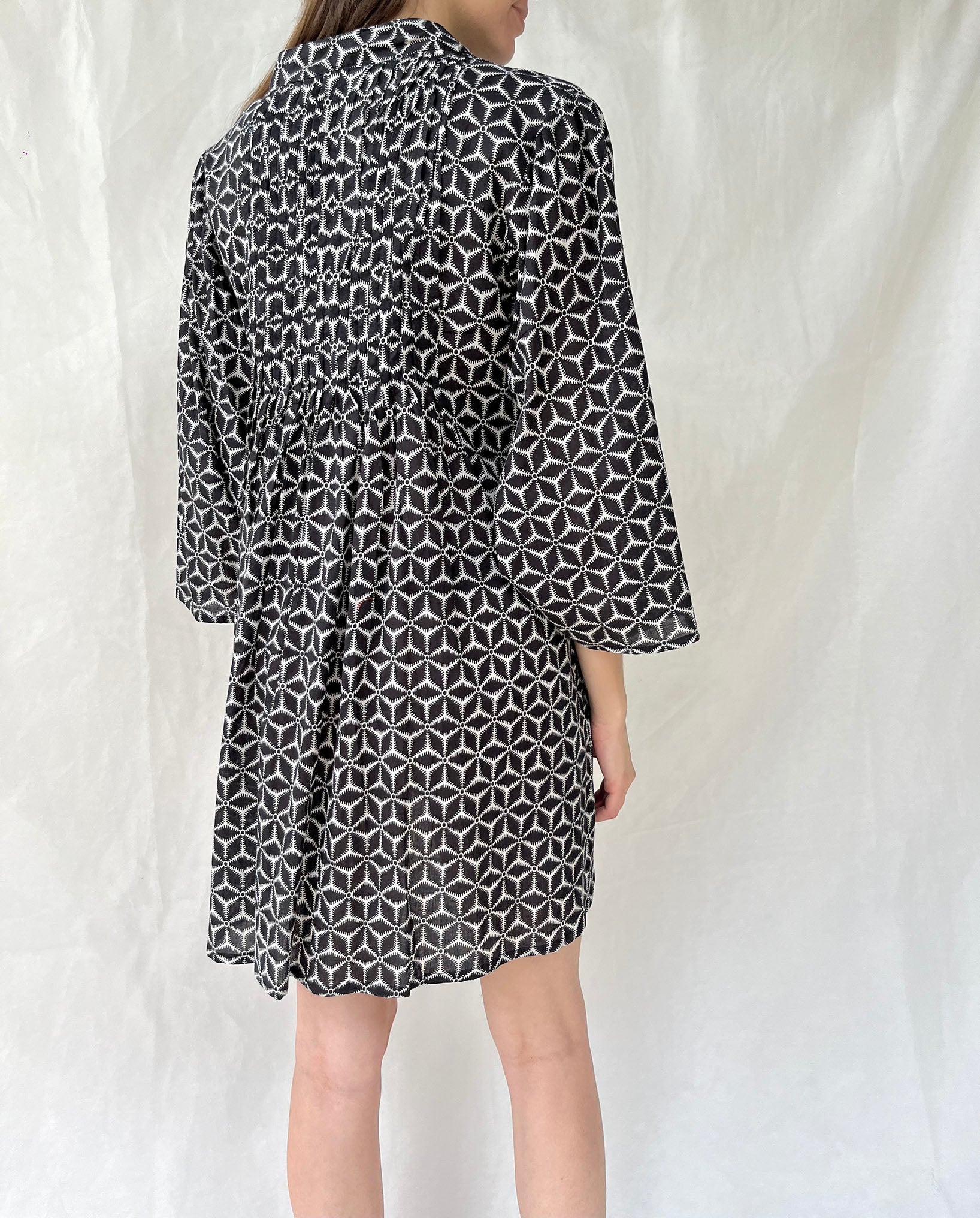 The Emma short dress, crafted from 100% soft and lightweight cotton, combines comfort with elegance. Featuring 3/4 sleeves and side invisible pockets, it’s an ideal style for warm days offering a natural airy feel without underlining.