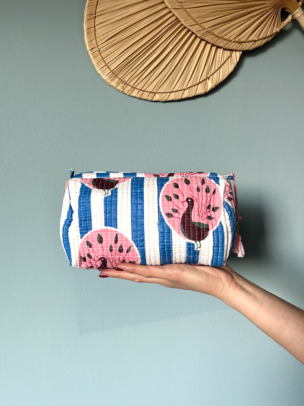 Our Mini Cosmetic Bag is your new go-to for keeping essentials organised, whether at home or on the move. As a sustainable bestseller, this bag is crafted from 100% hand-printed cotton and features a cotton inner lining, making it perfect for storing cosmetics or small items. Its compact design includes handy inner pockets for optimal organisation, combining charm with practicality.