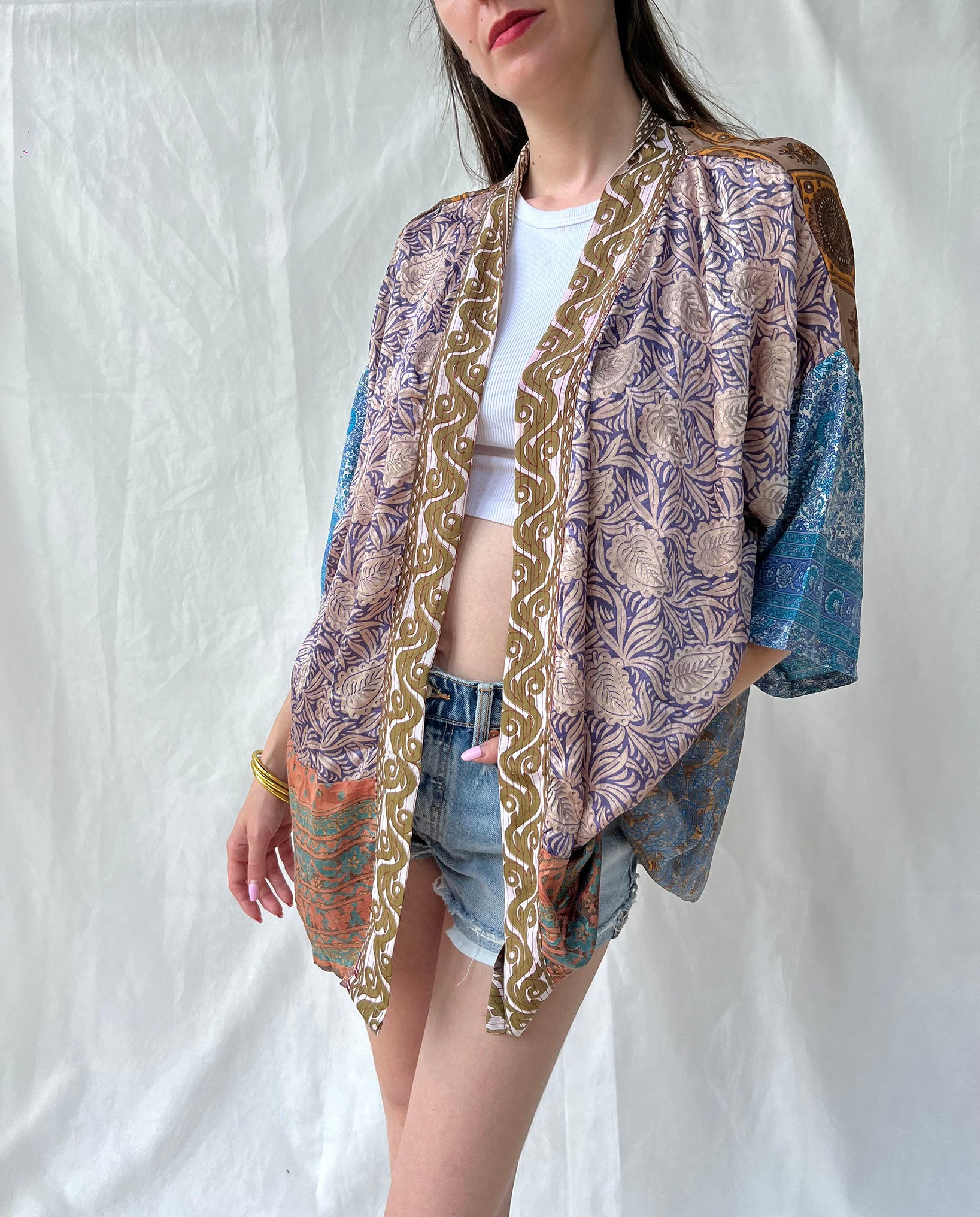 Our Bestseller Short Patchwork Cardigan is part of our No Waste Concept which means it’s made of different leftover saris from our collection and vintage silk pieces to reduce the waste of fabrics.